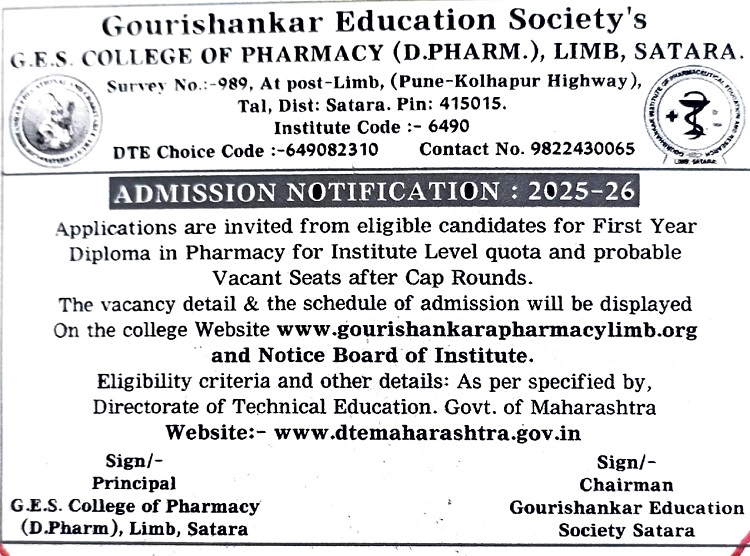 G.E.S COLLEGE OF PHARMACY (D.PHARM)LIMB,SATARA